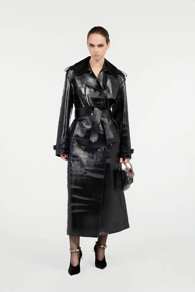 Black Genuine Leather Long Trench Coat