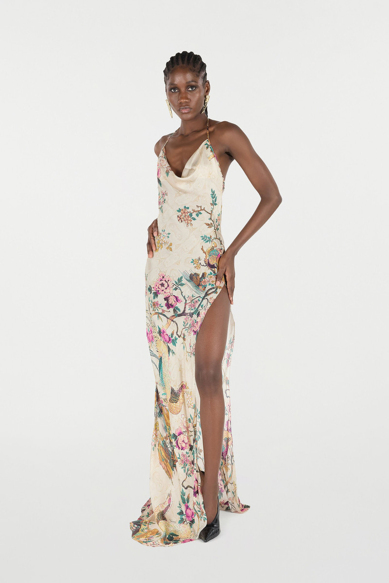 Ivory One-Shoulder Midi Dress with Cut-Out