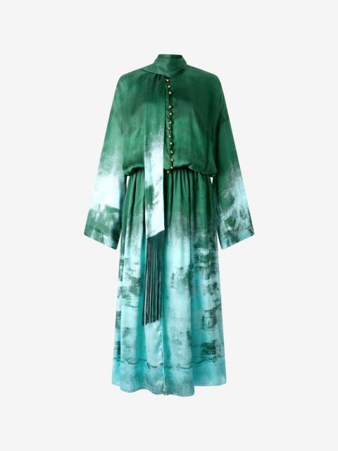 Extra-Long Silk Dress With Flower And Pheasant Print