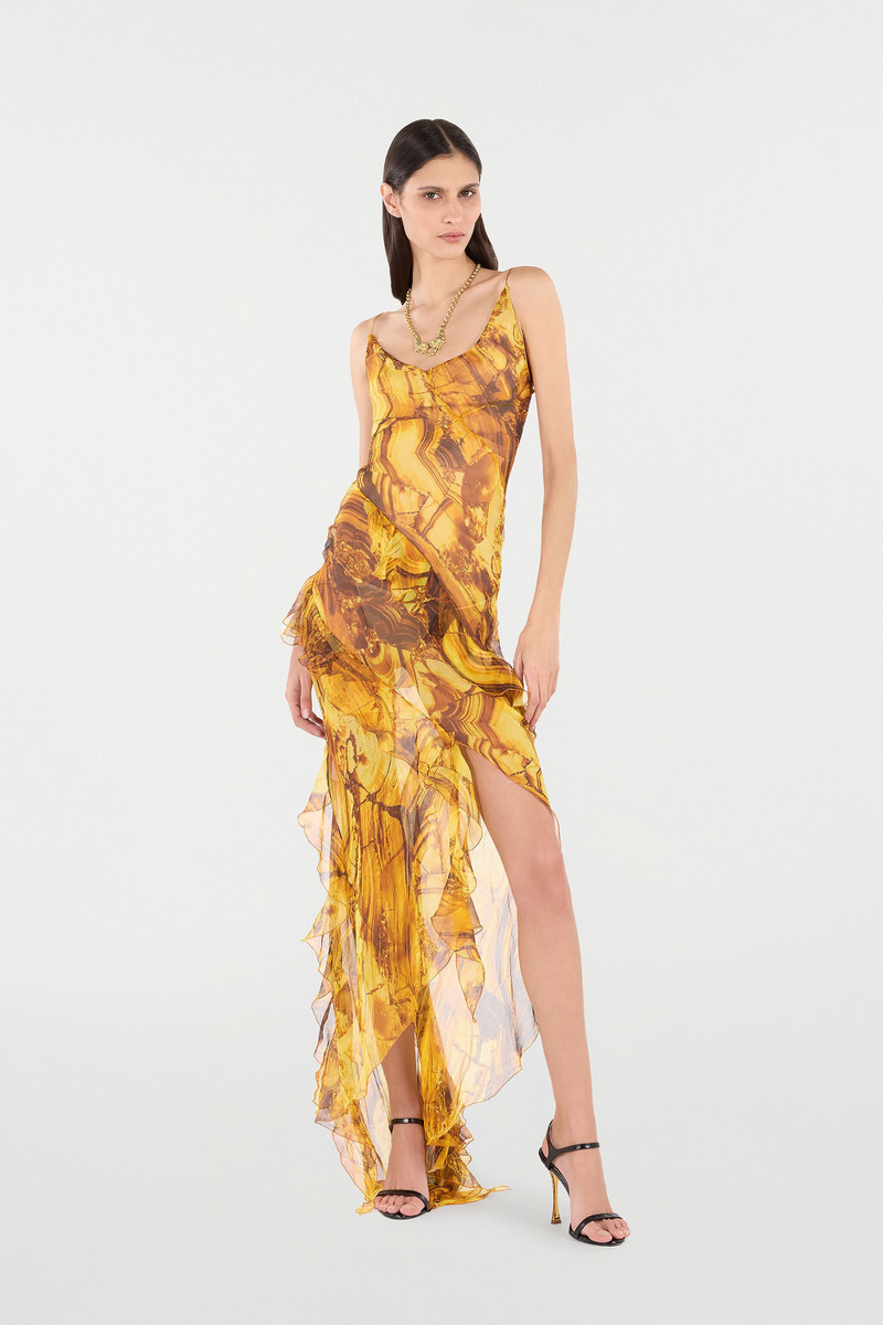 Asymmetric Silk Dress with Amber Print