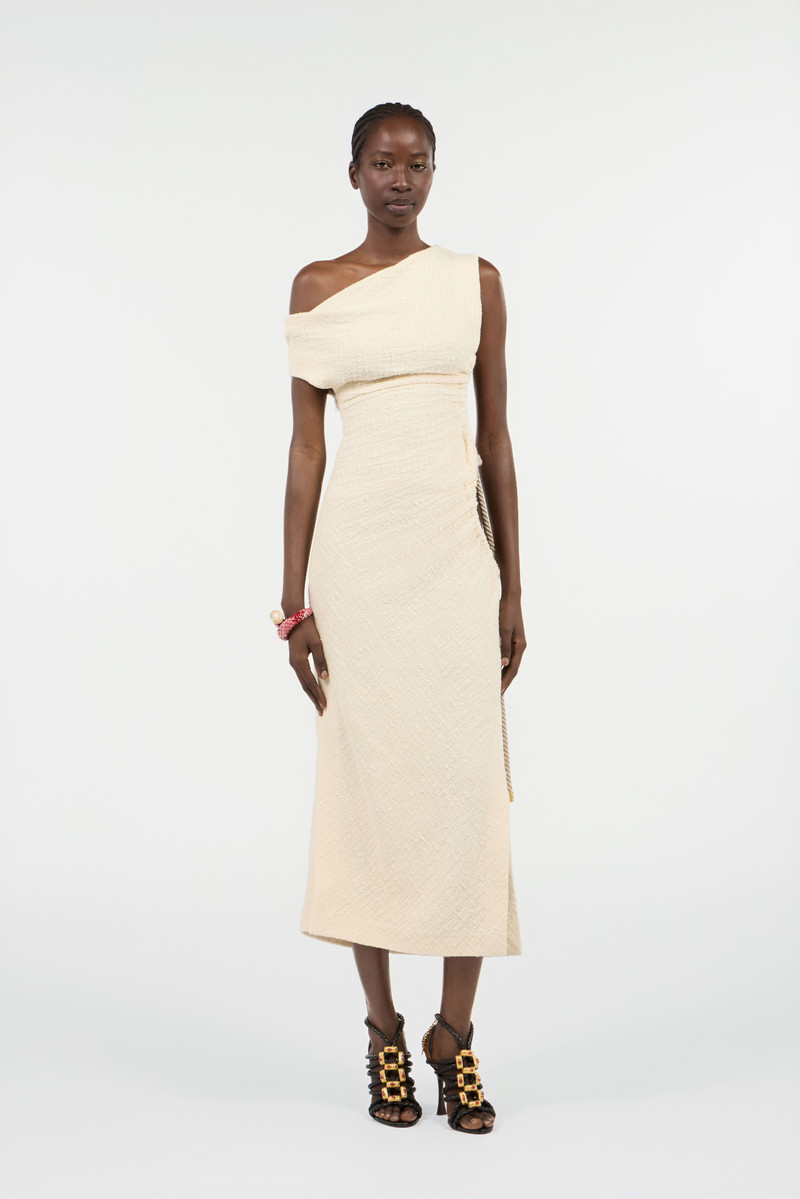 Ivory One-Shoulder Midi Dress with Cut-Out