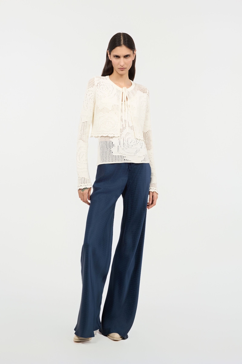 Flared Trousers with Florentine Flowers Jacquard Pattern