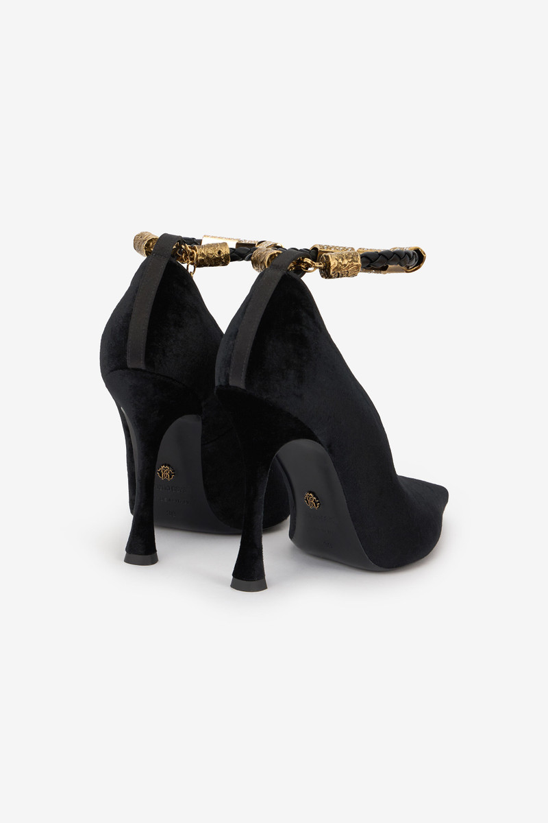 Roberto Cavalli Velvet Stiletto Heels With Jewel Anklet