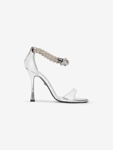 Metallic sandals with heels and tigers