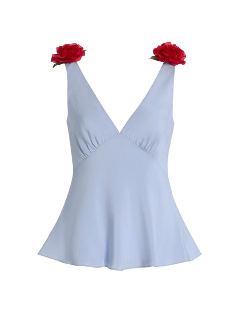 Exclusive Riviera Floral-Embellished Silk-Blend Crepe Top blue