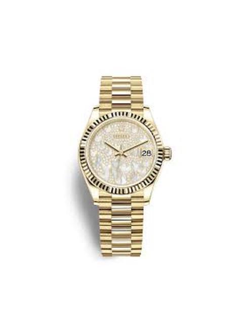 Rolex Datejust 31 Mother of Pearl Butterfly Diamond Pave Ladies 18kt Yellow Gold President Watch 278
