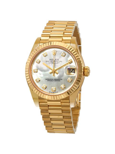 Rolex Datejust 31 Mother of Pearl Diamond Dial Ladies 18kt Yellow Gold President Watch 278278MDP