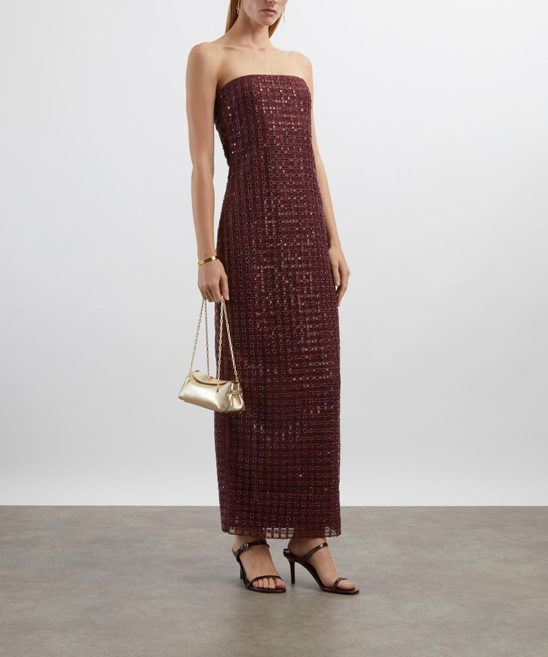 Bordeaux Beaded Maxi Tube Dress