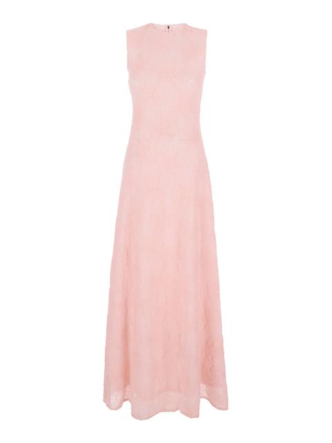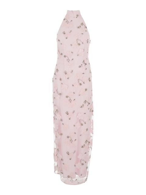 Rotate Women Pink Sleeveless Long Dress With Round Neckline And All-Over Floral Embroidery In Tech F