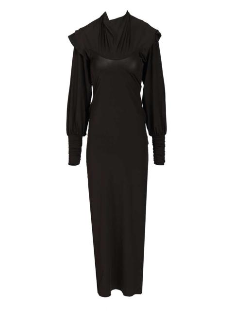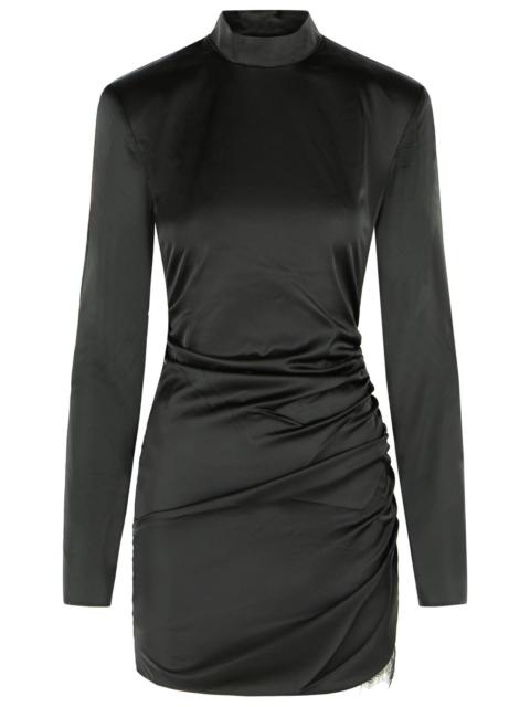 Rotate Black Ruched Crystal Mesh Midi Dress