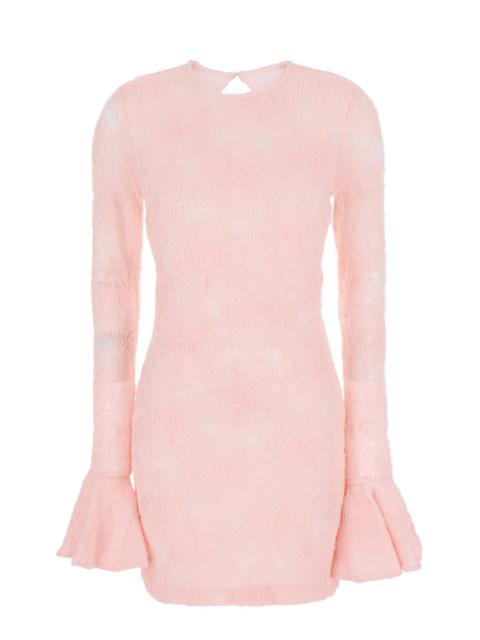 Rotate Cameo Pink Sheer Stain Ruffle One Shoulder Mini Dress