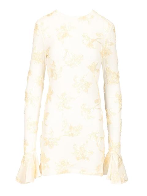 Rotate Women Black High Neck Mini Dress With Semi Sheer Sleeves And All-Over Floral Motif In Tech Fa