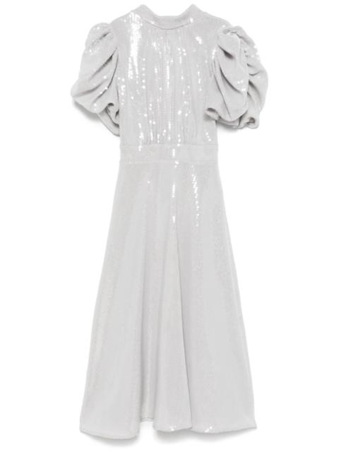 sequined puff-sleeve midi dress