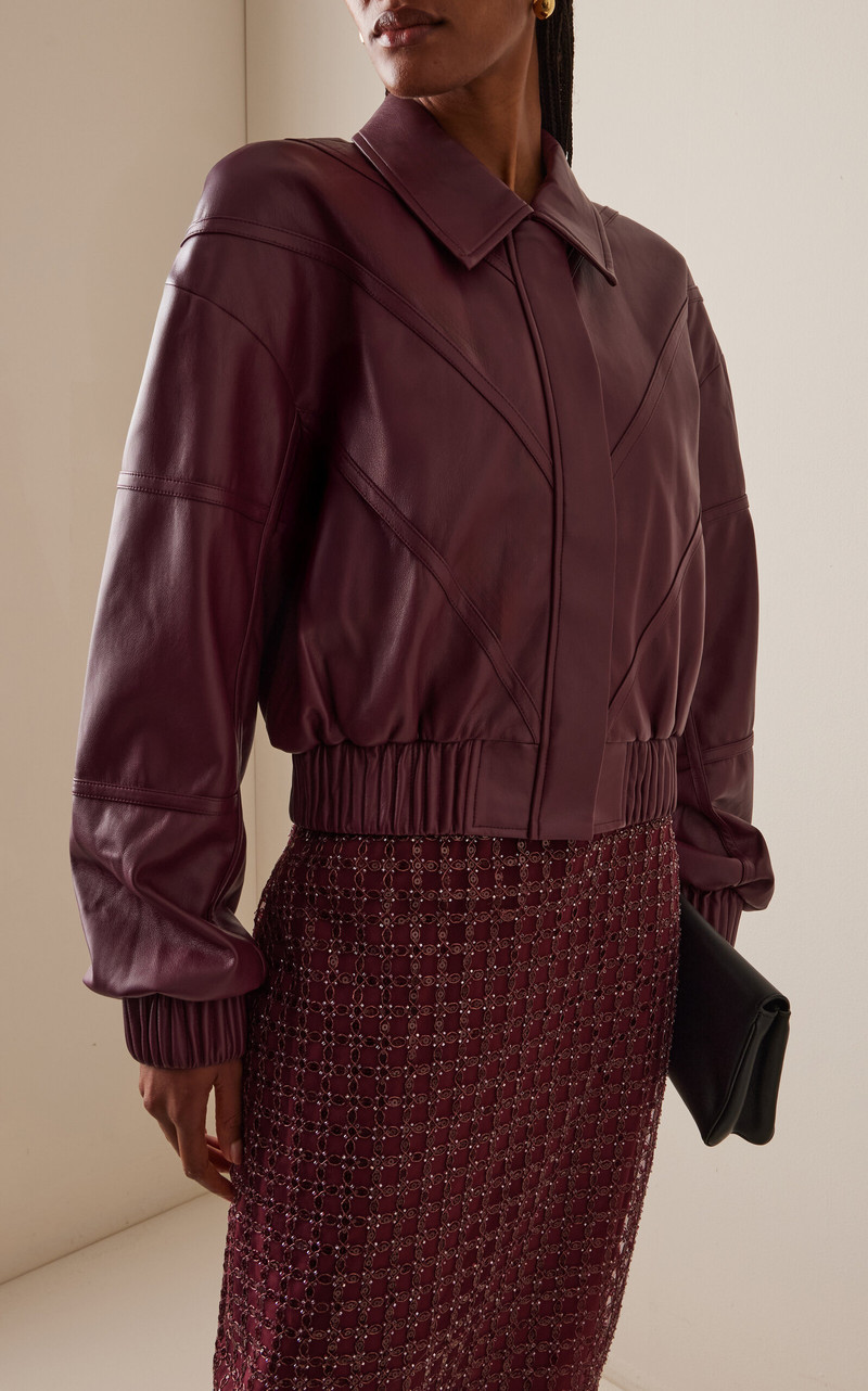 Faux Leather Bomber Jacket burgundy