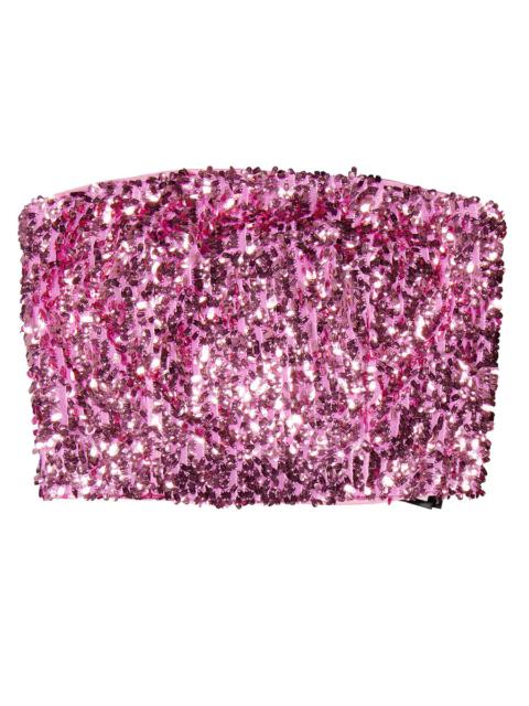 Rotate Ladies Black Sequin-Embellished Strapless Crop Top
