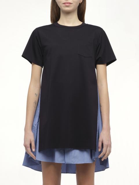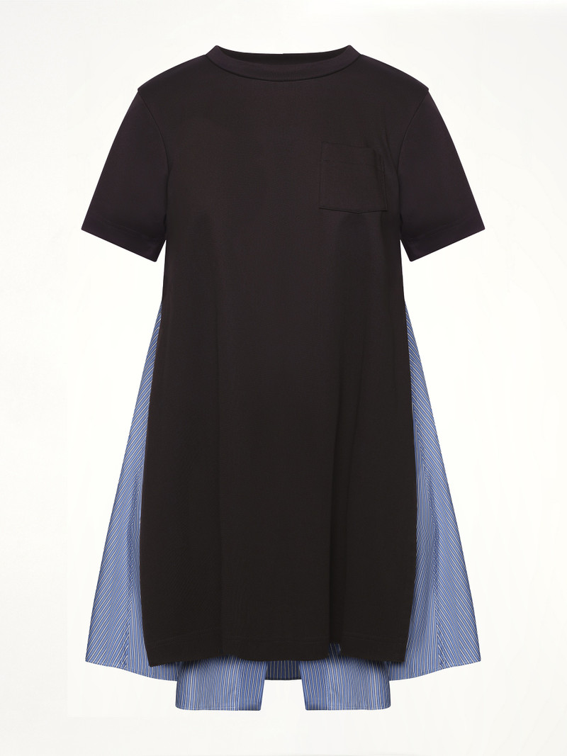 Poplin x Cotton Jersey Dress in Navy/Blue Stripe