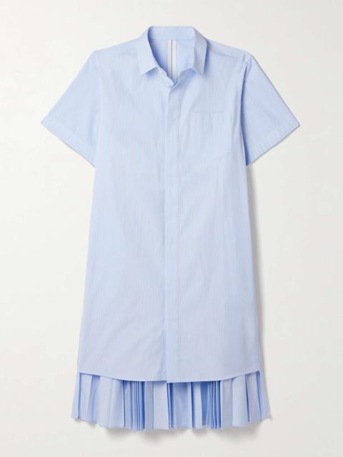 Layered pleated pinstriped poplin midi shirt dress Blue