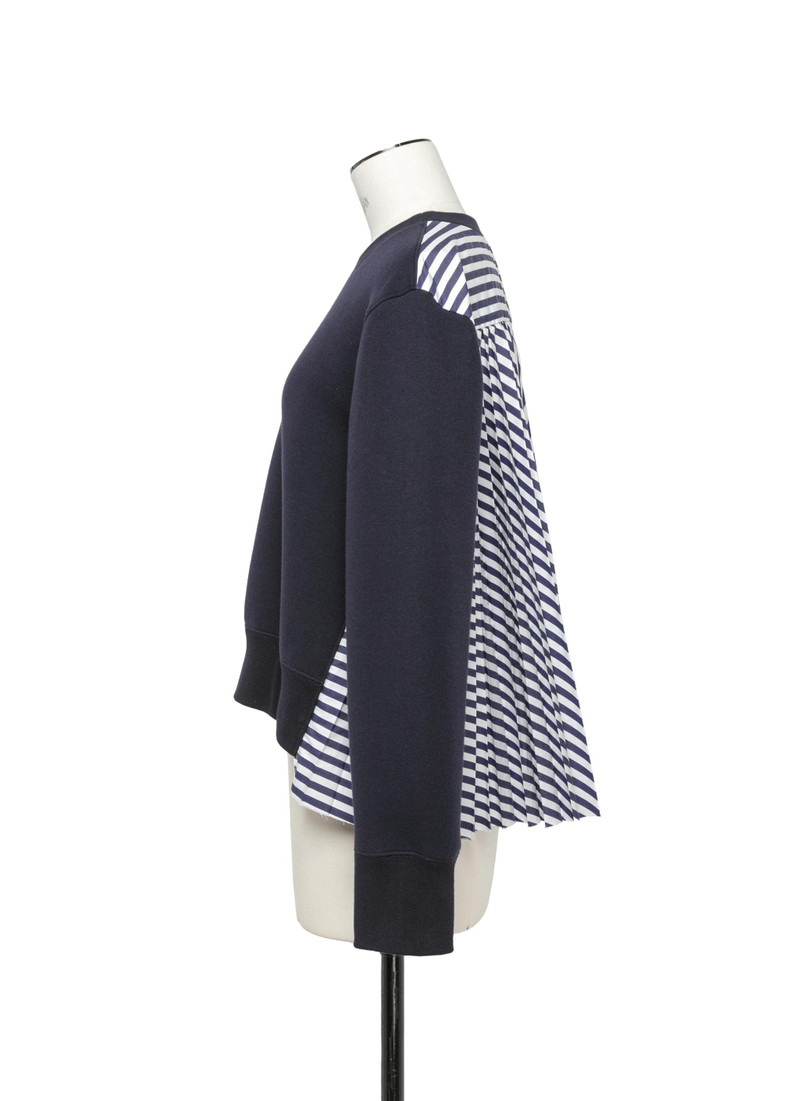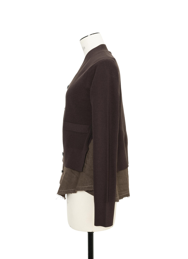 Cotton Knit x Cotton Poplin Cardigan in Navy