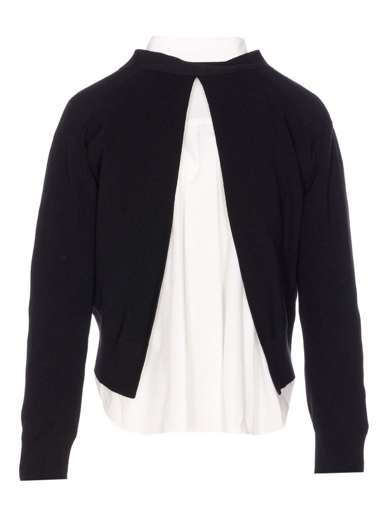 Wool Knit x Cotton Poplin Cardigan in Black/Black