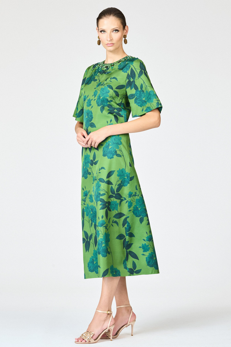 EMBELLISHED LEMIE DRESS - EMPRESS GREEN ROSES