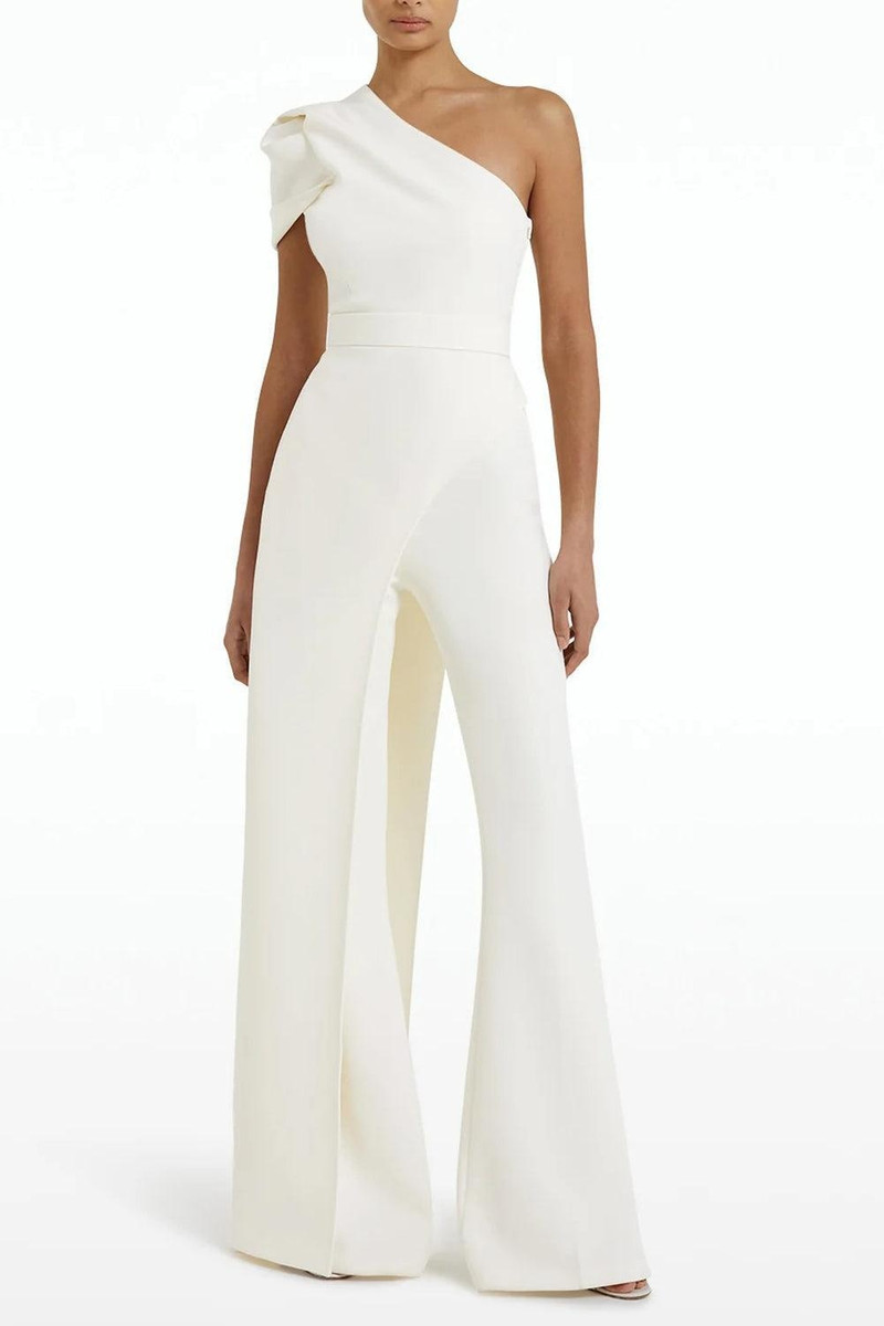 One-shoulder heavy crêpe gown