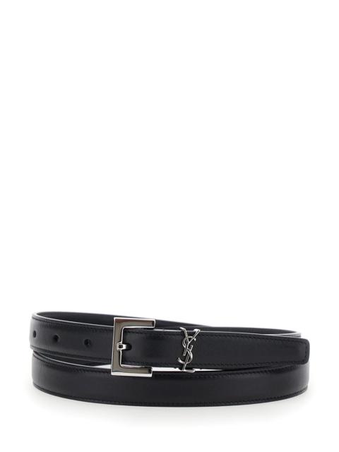 Saint Laurent Women Black Leather Belt With Logo Buckle Saint Laurent Woman