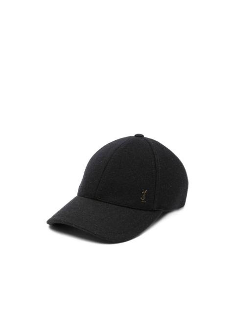 Saint Laurent Women Black Baseball Cap With Tonal Embroidery In Cotton And Linen Woman