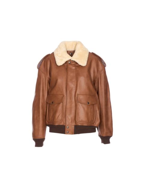 Saint Laurent Women Hammered Leather And Shearling Bomber Jacket