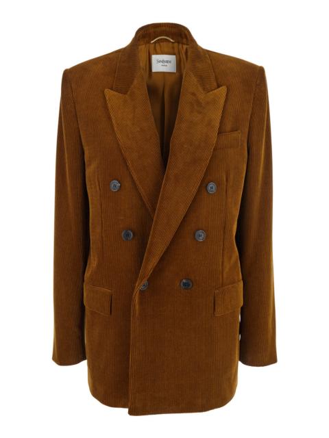 Saint Laurent Women Brown Double-Breasted Jacket With Notched Revers And In Corduroy Woman