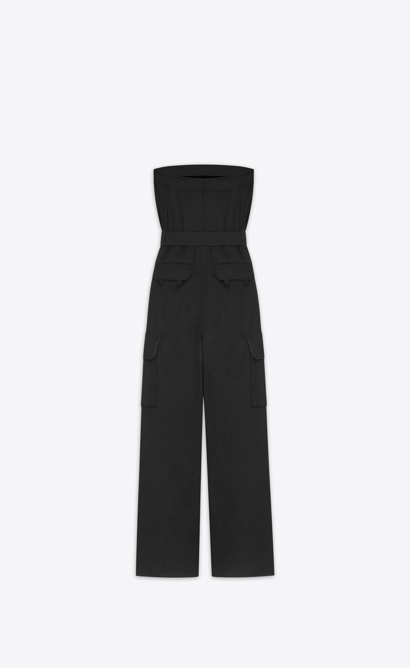 Indulge in the chic sophistication of SAINT LAURENT jumpsuits, featured prominently in our exclusive assortment of luxury women's clothing. SAINT LAURENT's jumpsuits embody a perfect blend of modern elegance and timeless style, ideal for fashion-forward individuals who appreciate immaculate craftsmanship and signature design.
