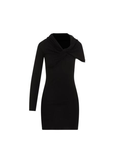 Saint Laurent Womens Black Ruched Long Sleeve Dress
