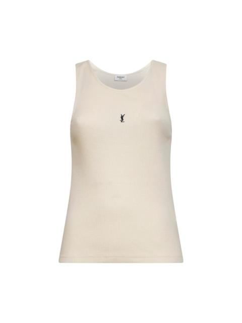 Saint Laurent Women Natural Ribbed Cotton Cassandre Tank Top