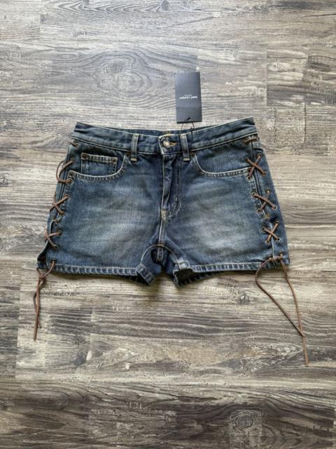Saint Laurent Paris Leather Lace-Up Denim Short
