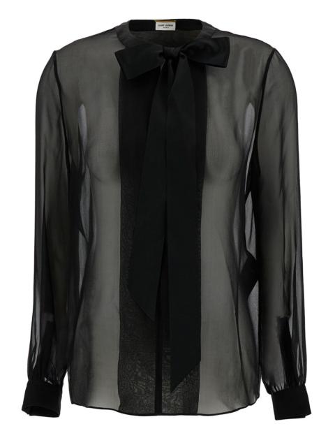 Saint Laurent Women Black Shirt With Bow Detail In Semi-Sheer Silk Woman