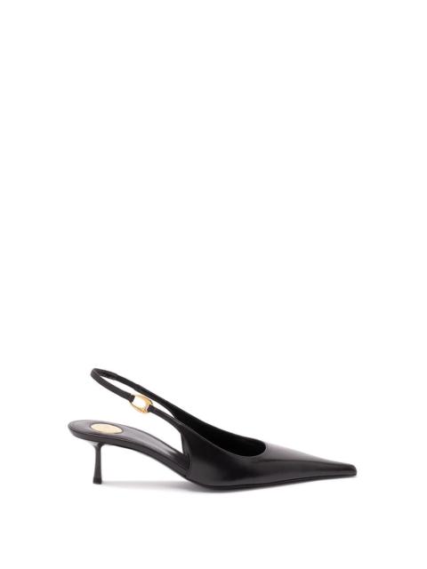 Saint Laurent Women 'Babylone' Black Slingback Pumps With Cut-Out Toe With Cassandre Plaque And High