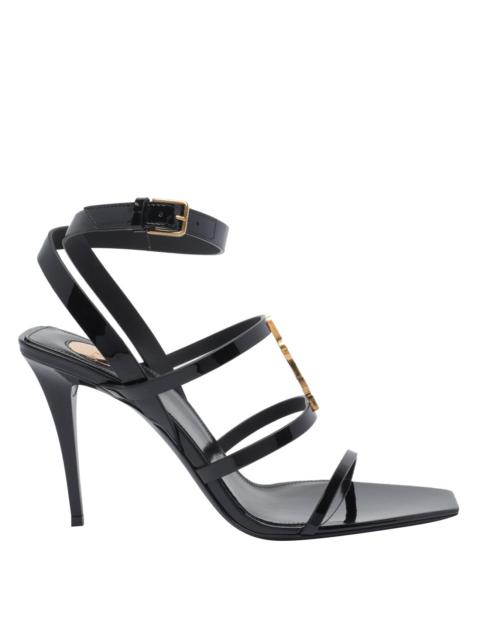 Saint Laurent Women 'Opyum' Black Sandals With Ysl Heel In Patent Leather Woman