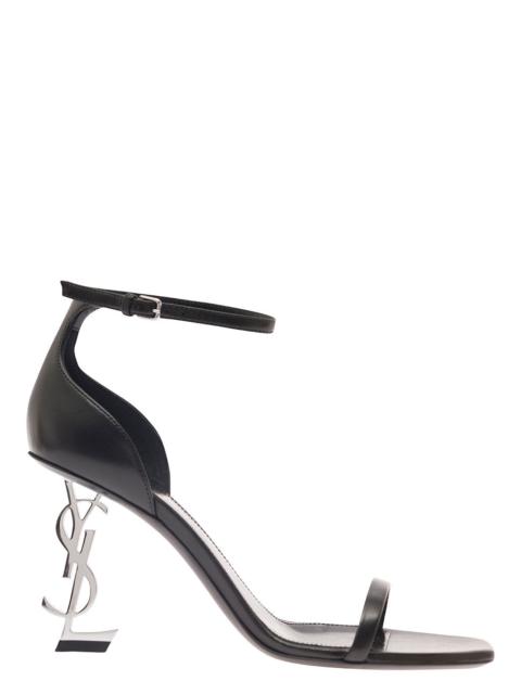 Saint Laurent Women 'Opyum' Sandals With Monogram Heel In Smooth Leather Black Woman