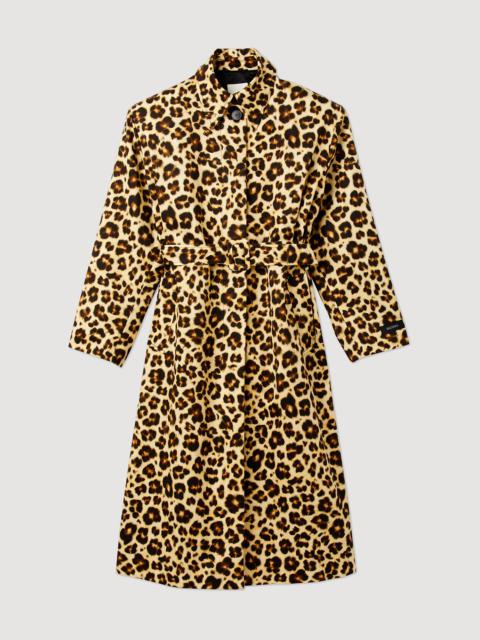 Oversized leopard-print trench coat