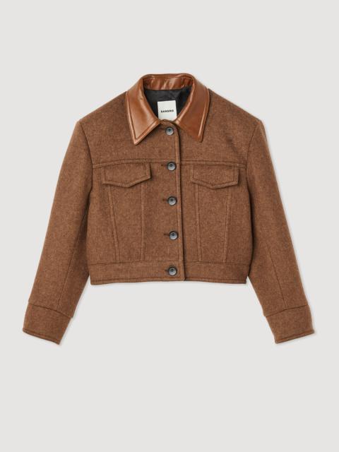 Short coat with leather collar