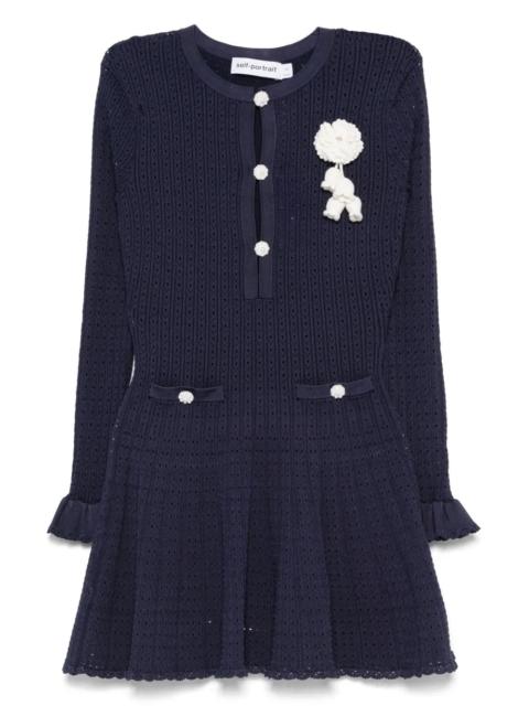Self-portrait - Purl Knit Lace Cut-out Shoulder Short Dress