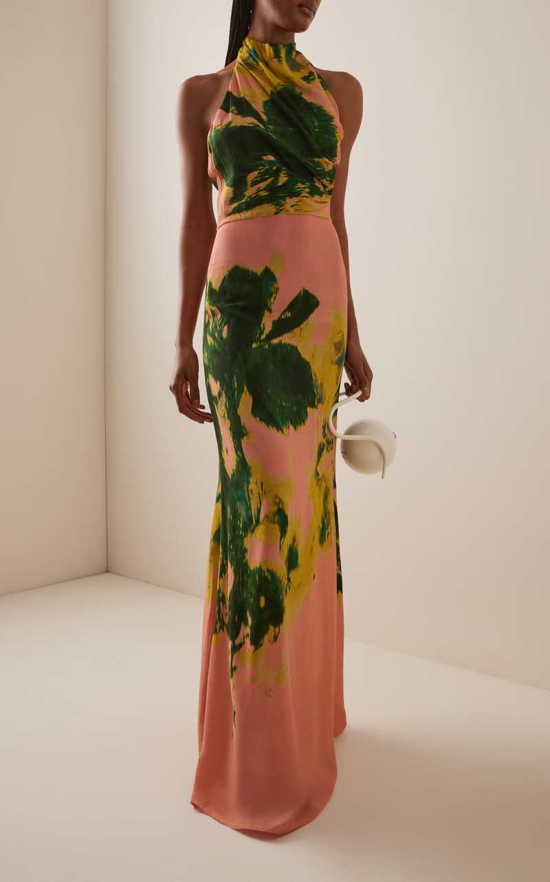 Ellis Floral Crepe Halter Maxi Dress multi