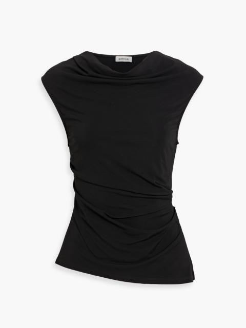 Celiana one-shoulder twisted taffeta and stretch-knit top