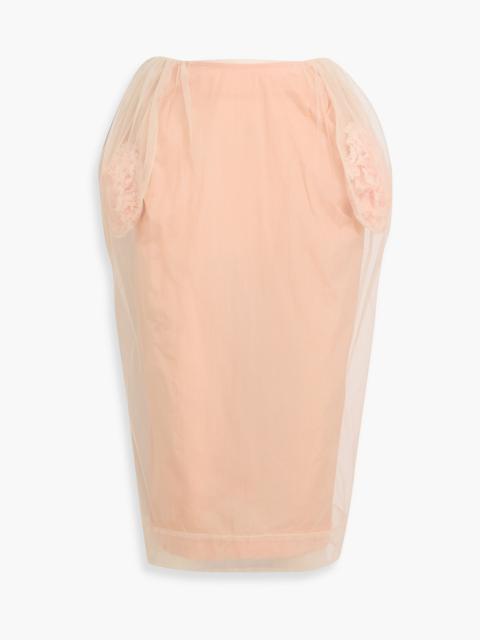 Floral-appliquéd tulle midi skirt