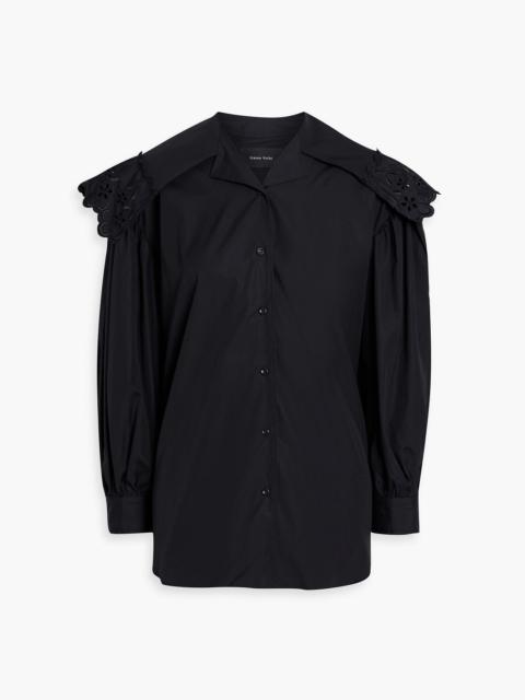 Broderie anglaise-trimmed cotton-poplin shirt