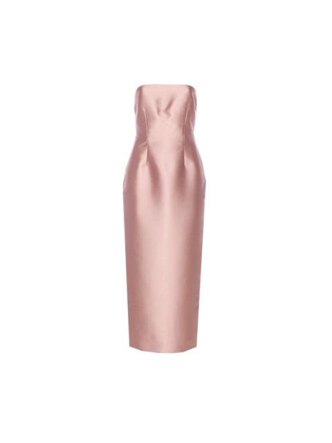 Solace London Women 'Morgan' Pink Long Dress With V Neck And Rear Single Slit In Tech Fabric Woman