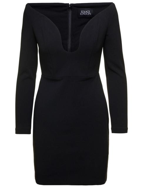 Solace London Women Black ' Uma' Mini Dress With Long Sleeves And U-Neck In Polyester Woman