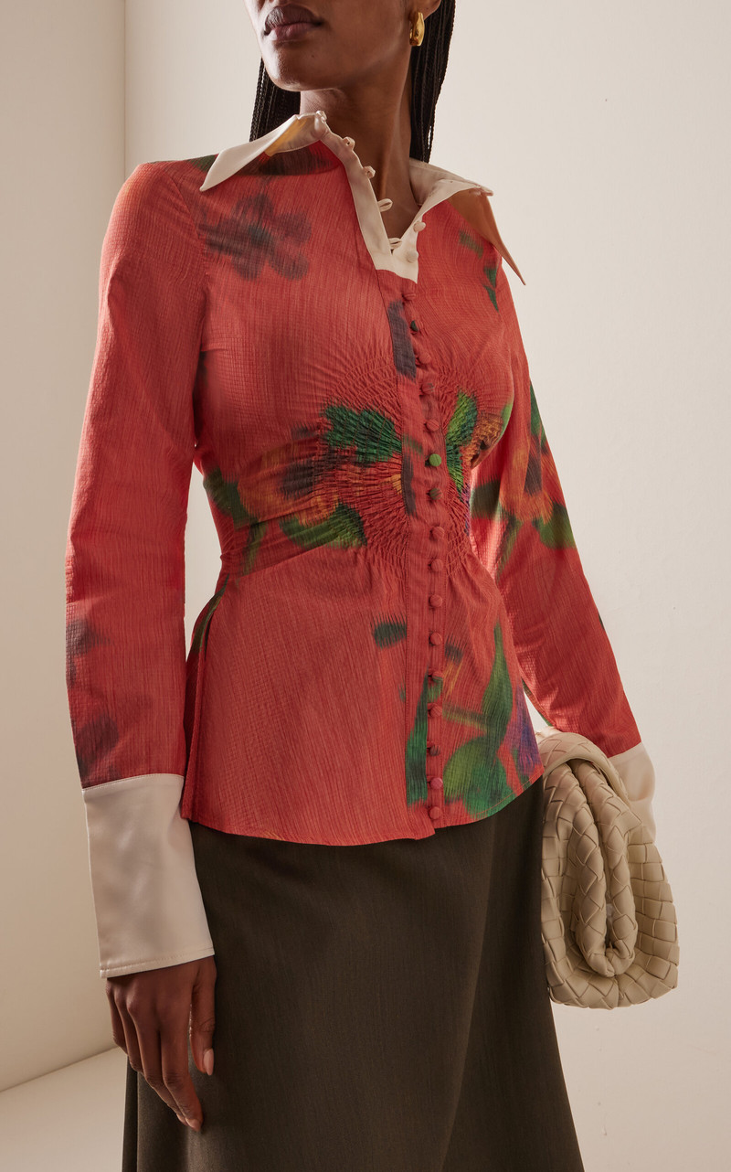 Eva Floral Cotton-Ripstop Circle Shirt red