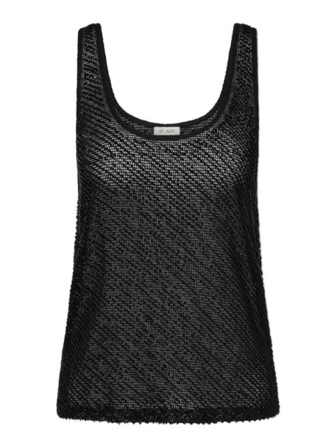 Glass Beaded Mesh Top in Jet Black