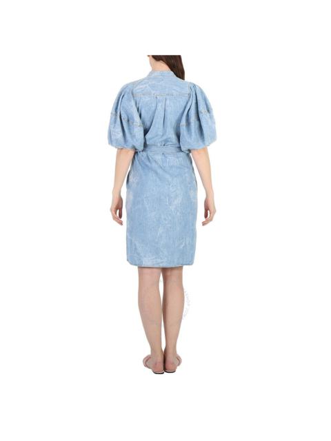 Stella Mccartney Crinkle Blue Denim Puff Sleeve Dress