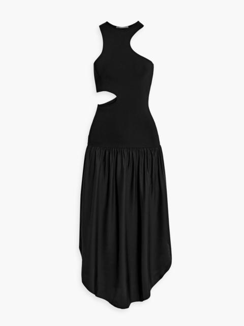 Cutout silk and stretch-knit midi dress